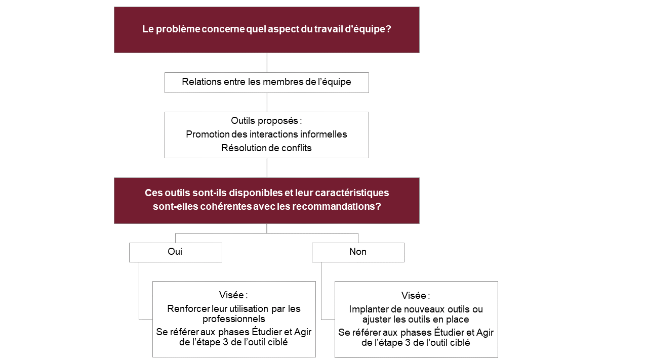 Deuxième étape : Analyse des outils disponibles actuellement en soutien au travail d’équipe et sélection des outils à prioriser pour améliorer le travail d’équipe