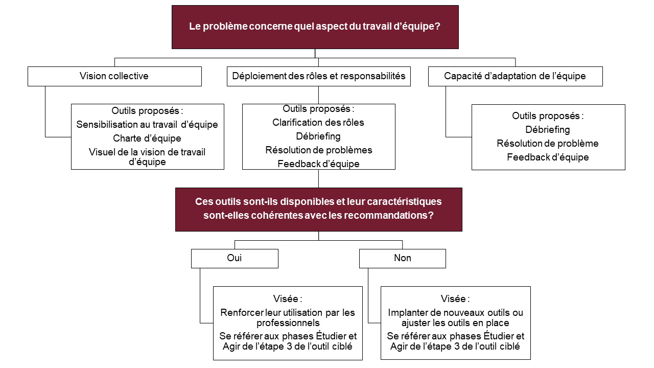 Deuxième étape : Analyse des outils disponibles actuellement en soutien au travail d’équipe et sélection des outils à prioriser pour améliorer le travail d’équipe